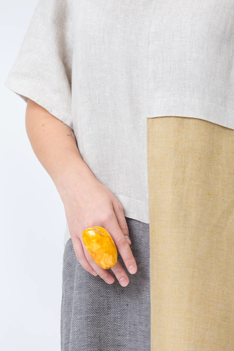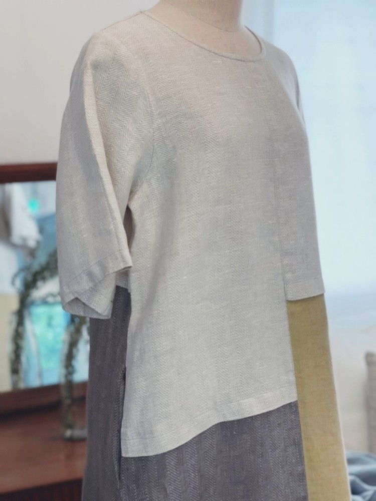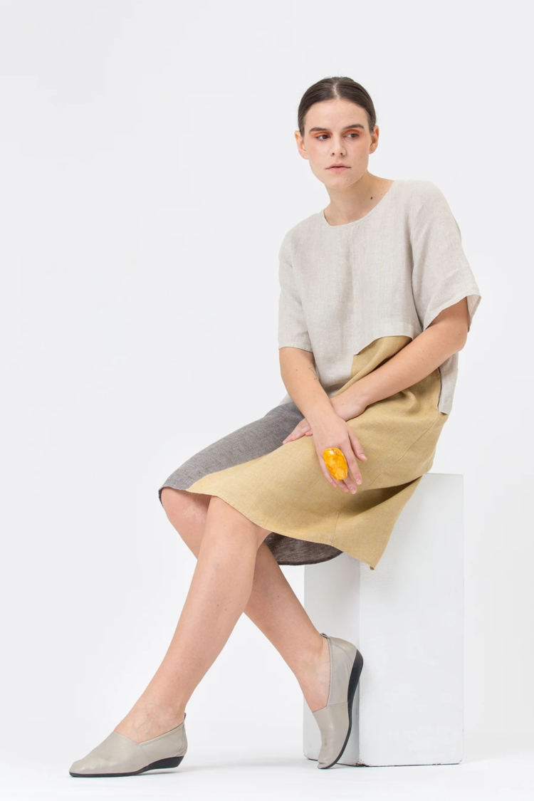 Relaxed silhouette trapeze shaped dress with asymmetrically crafted details on both sides.