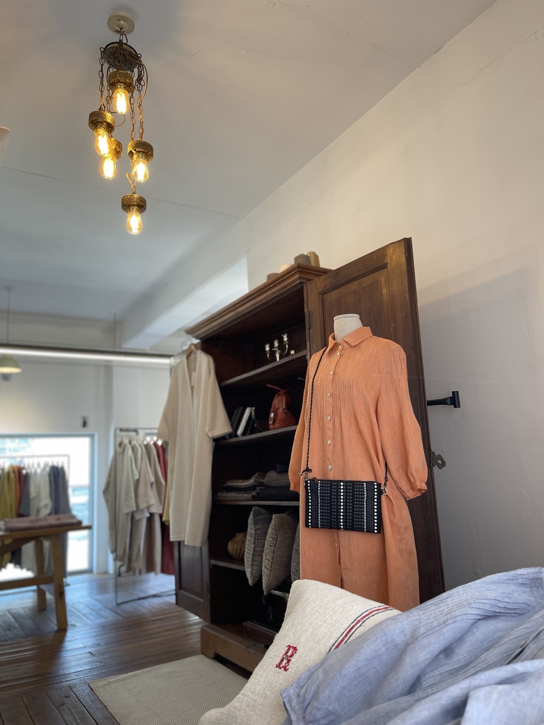 유라테 사울레 선셋 오렌지 린넨 드레스